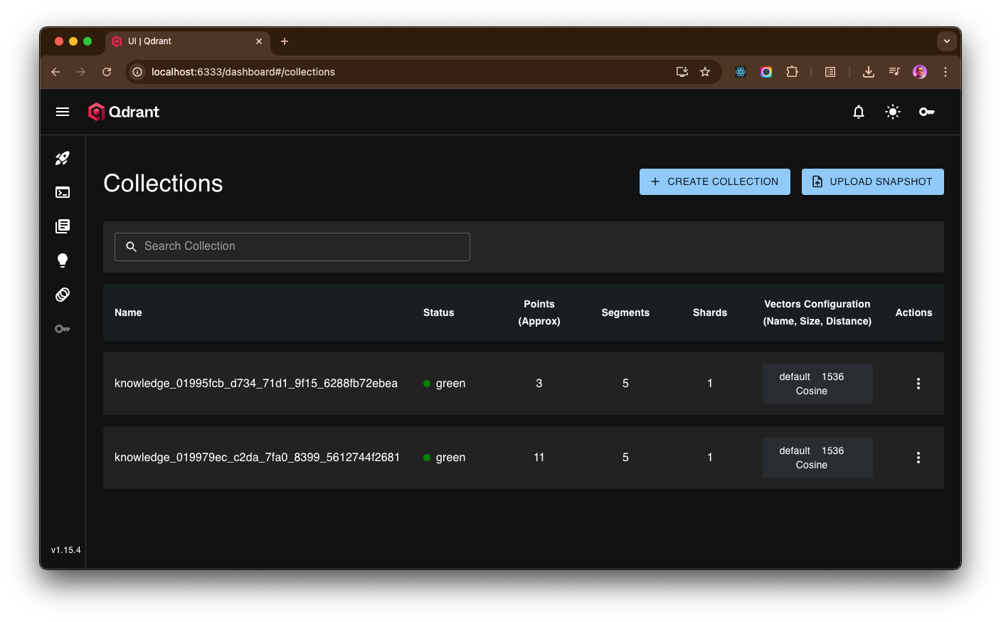 Here screenshot of Qdrant Dashboard run on a local Docker container, contains vector data from OpenAI embedding output: