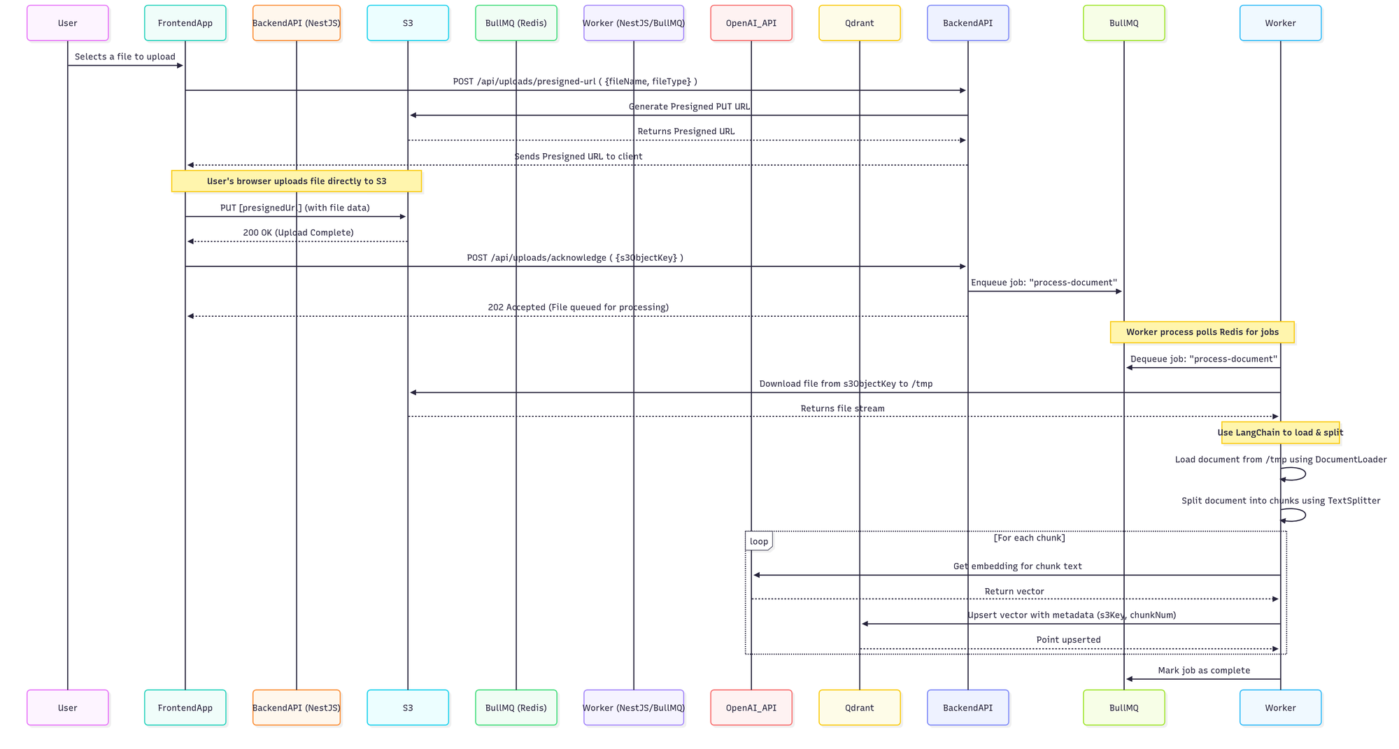 BackendAPI->>BullMQ: Enqueue job: "process-document"